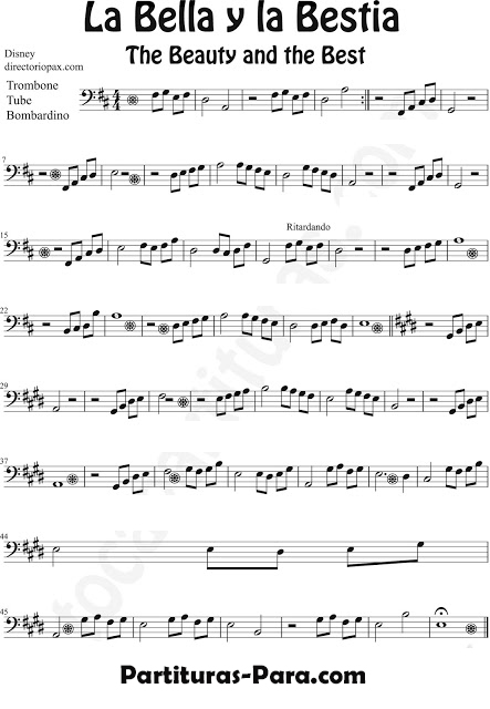 - La Bella y la Bestia Partitura de Trombón, Tuba y Bombardino en Clave de Fa.jpg